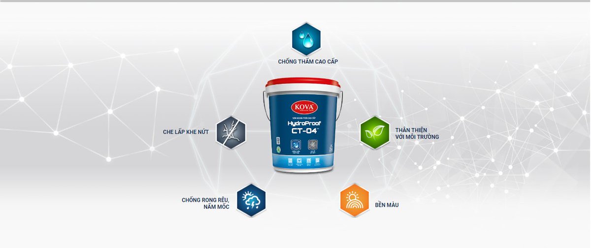 Là loại sơn hệ Acrylic phủ ngoài trời, đã hoàn toàn nhiệt đới hóa, rất phù hợp với khí hậu nóng ẩm của Việt Nam. Dùng để sơn phủ trang trí ngoài trời, sau khi đã làm phẳng tường bằng mastic KOVA (dẻo/bột), phù hợp với nhiều loại bề mặt của tất cả các công trình xây dựng dân dụng và công nghiệp.